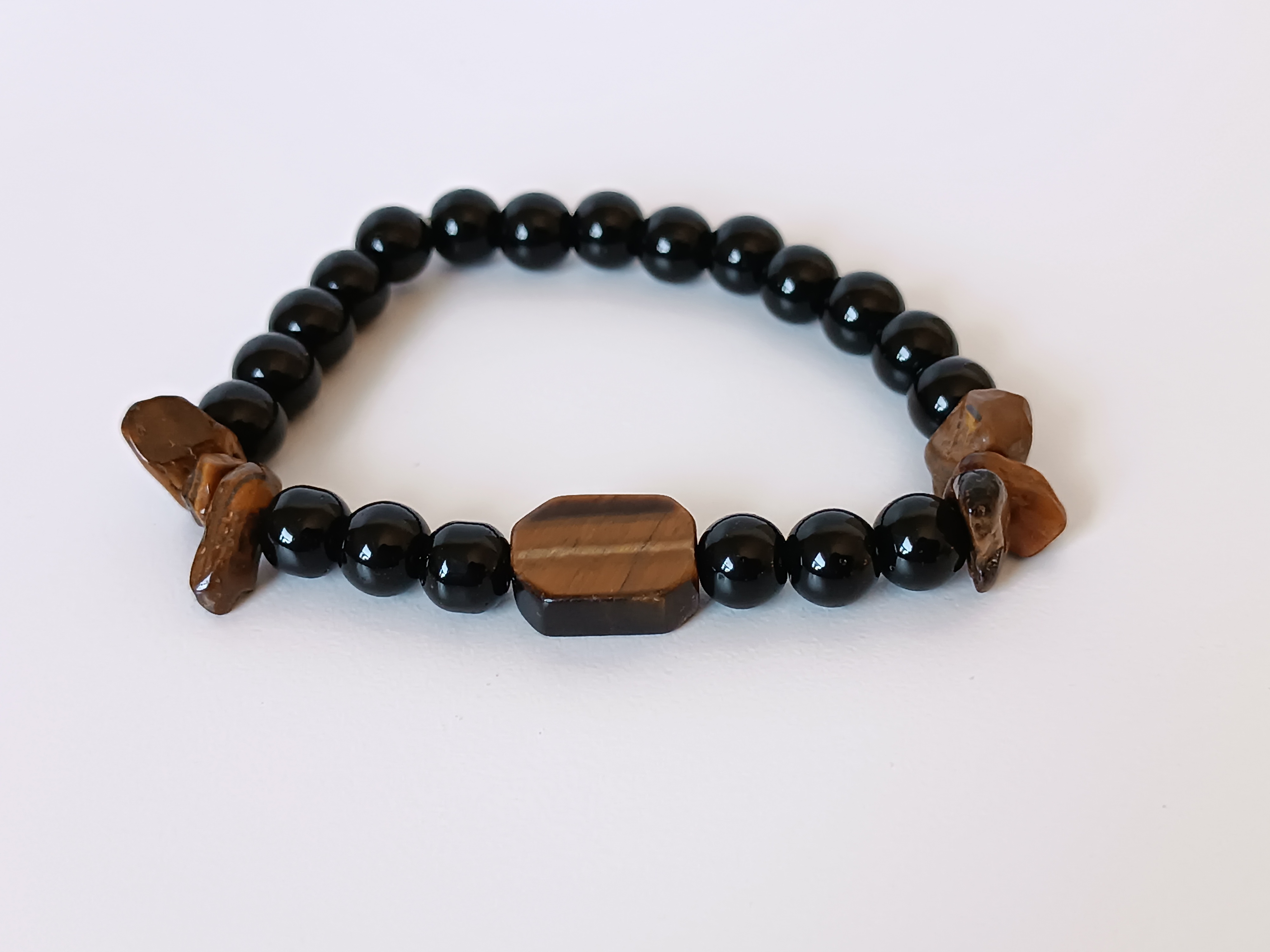با مهره های اونیکس براق، نگین چشم ببر و سنگهای دفرمه چشم ببر