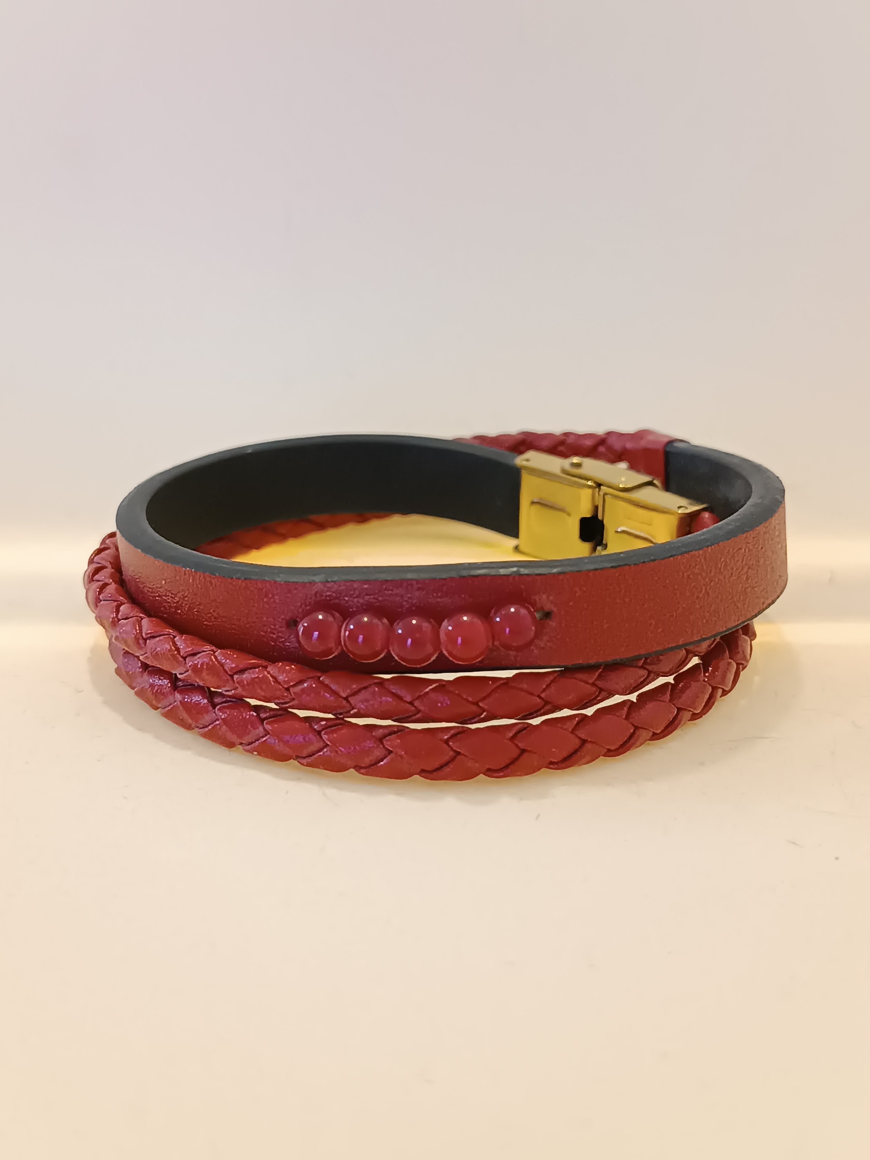 دستبند چرم طبیعی با مهره های گارنت سرخ طبیعی