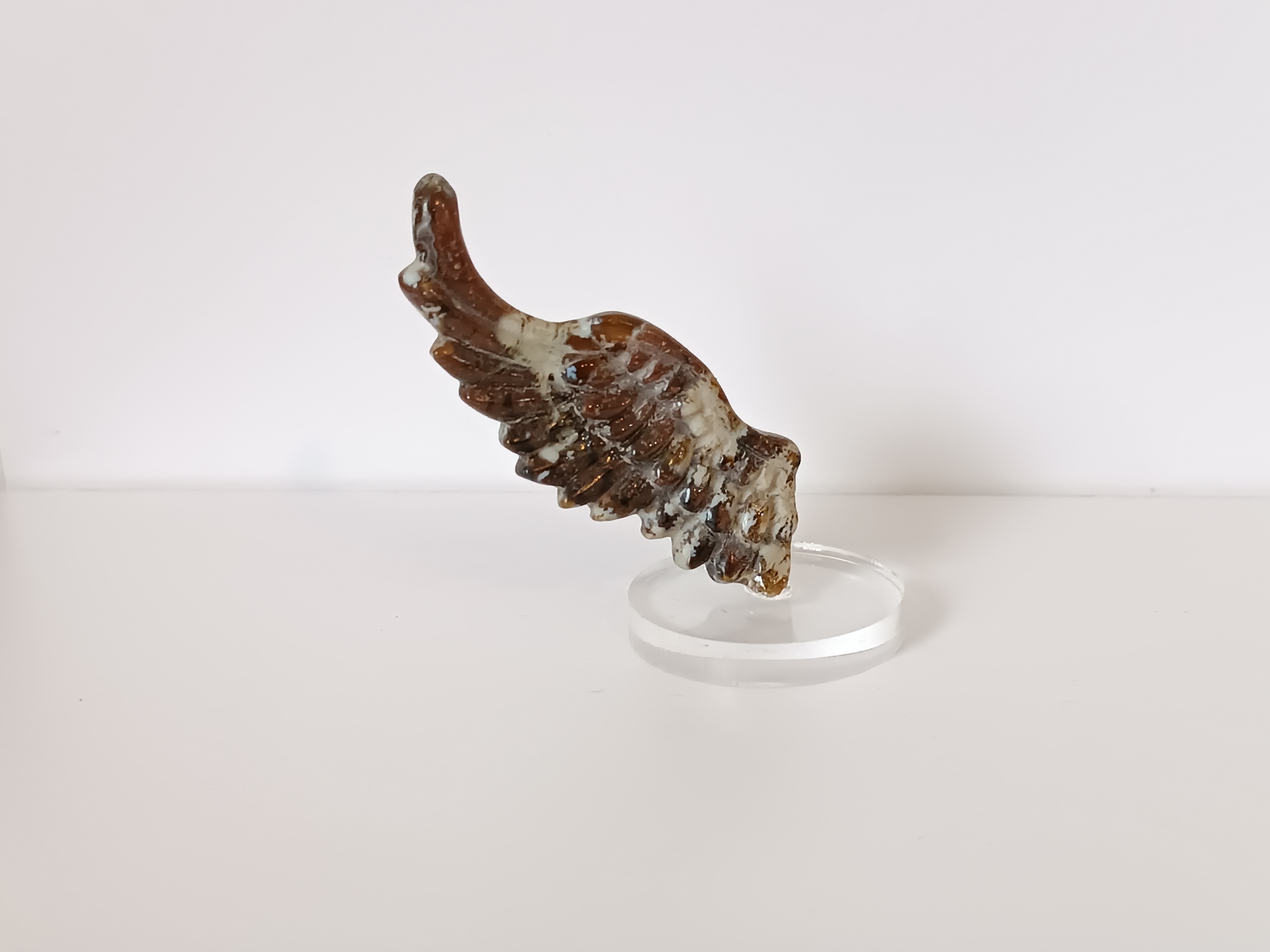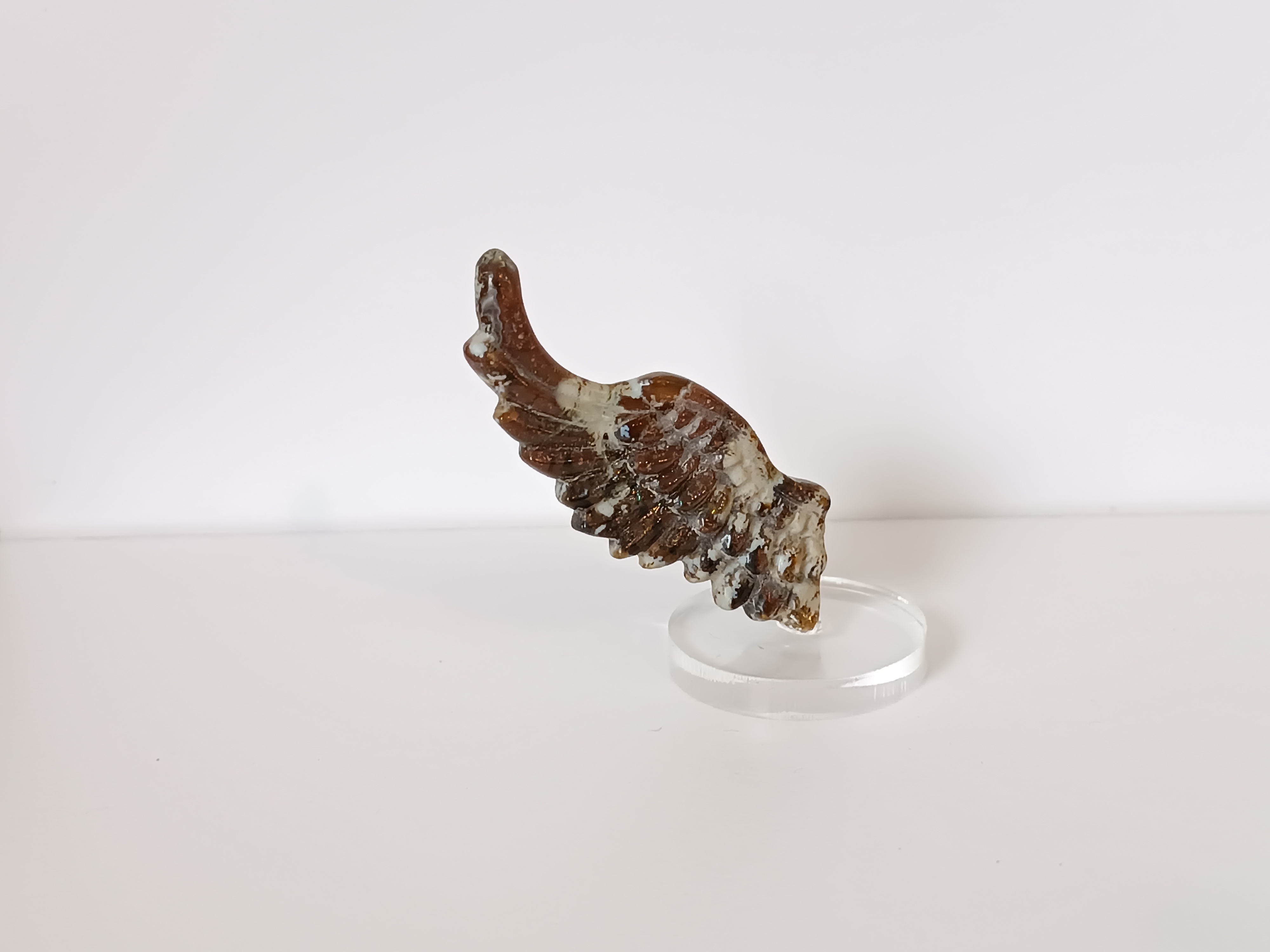 کاروینگ یا تراش روی سنگ بال فرشته ، بر روی سنگ عقیق جاسپر بلدرچینی بسیار نادر ابعاد مجسمه ۶در ۲ سانتیمتر