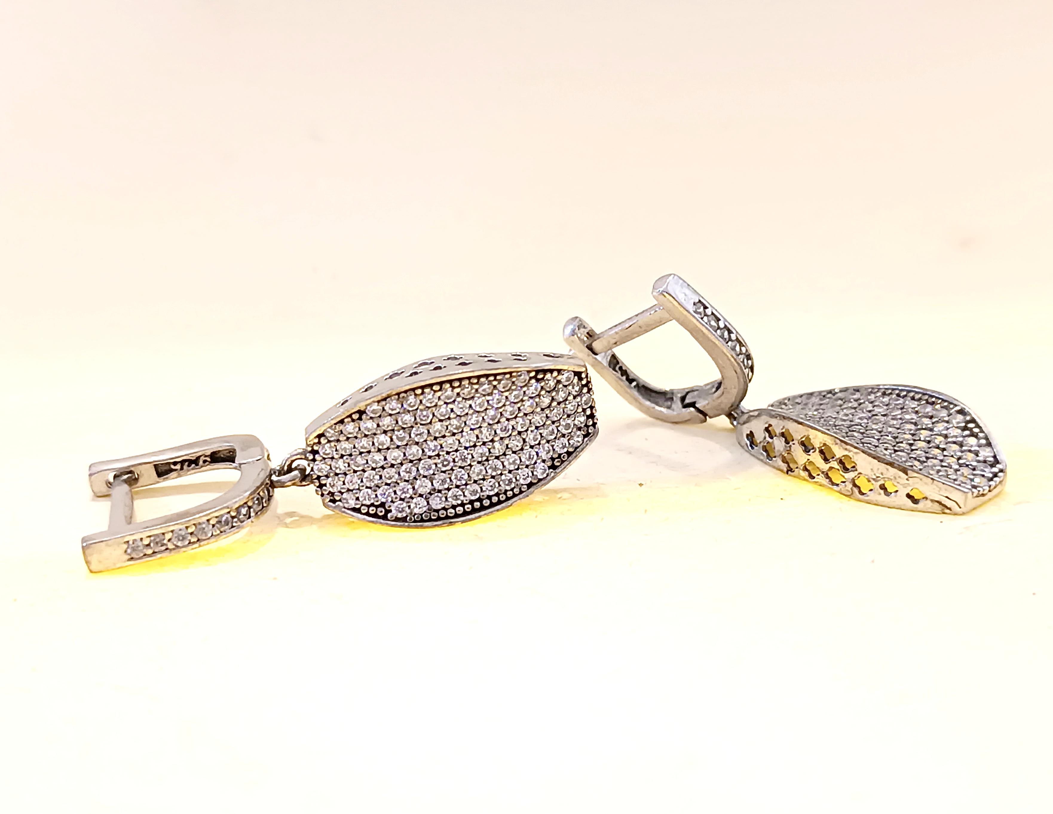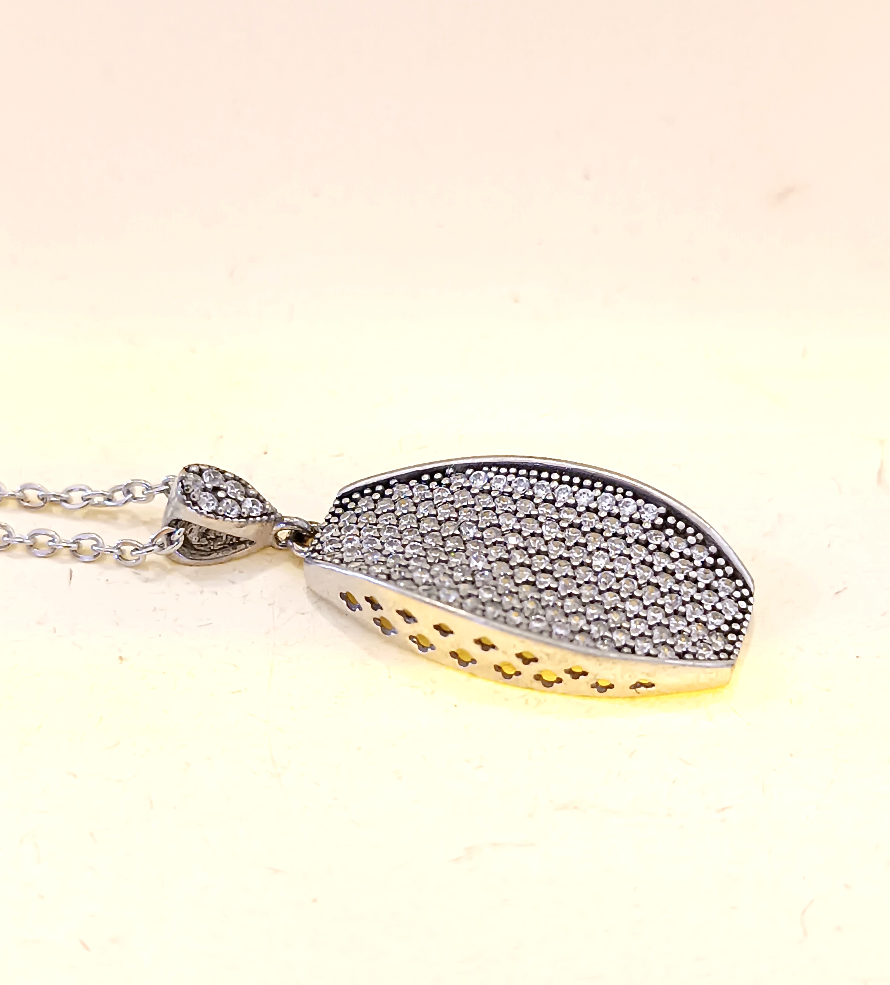 نیمست نقره استرلینگ آبکاری رودیم نگین های اتمی اتریشی شامل گردنبند و گوشواره و همراه با زنجیر استیل میباشد.